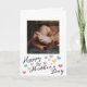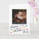 Agrega tu foto de la tarjeta del primer día de la madre. La parte delantera de esta primera tarjeta del día de la madre tiene un espacio para que agregues fácilmente tu propia foto, hay un saludo de Feliz primer día de la madre en la parte inferior junto con corazones coloridos. El interior contiene un dulce mensaje para mamá, que también puedes editar fácilmente. La parte trasera tiene un espacio para que coloques el nombre del niño junto con mamá, mami, etc. Un recuerdo dulce y único para el primer día de la madre de una hija, nieta, sobrina y más.