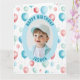 ¡Haz que el gran día de un niño pequeño sea aún más especial con esta encantadora tarjeta de cumpleaños personalizado! Con un alegre fondo de globo acuático en suaves tonos azules, rojos y de menta, este diseño enmarca la foto de su hijo en un alegre óvalo con el negrita "Feliz Cumpleaños" arriba y personalizado con su nombre debajo. Perfecto para niños pequeños y pequeños, esta tarjeta personalizada está llena de diversión festiva y puede ser personalizada con su propio mensaje dentro. Ya sea por tu hijo, nieto, sobrino o un amigo especial, esta carta es un dulce sabor que los padres apreciarán.