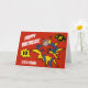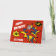 Esta tarjeta de cumpleaños con tema de superhéroe que convierte a tu hijo en un superhéroe es la forma perfecta de desear a cualquier niño un feliz cumpleaños. La tarjeta muestra su edad en una burbuja de diálogo, un superhéroe con su foto incorporada y su nombre. Los estilos de fuente, tamaños y colores se pueden cambiar después de personalizar haciendo clic en el enlace personalizar más.