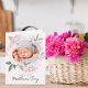 La tarjeta de felicitación del primer día de la madre cuenta con flores de peonía en acuarela, vegetación y tu foto favorita.