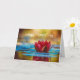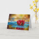 Tarjeta del Día de la Madre con una fotografía de un estanque con una hermosa flor de loto roja asomando en la parte superior.