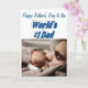 Tarjeta de saludos del Día del Padre con el texto azul marino 3D del #1 del Mundo y tu foto. Personalizar tu texto dentro de la tarjeta para un toque personal.