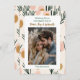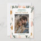 Deseándote Navidades llenos de paz, alegría y calidez. Agregue su foto familiar en el área de personalización. El fondo son ramas abstractas rosadas, tostadas y verde salado.