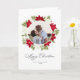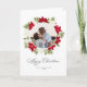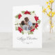 Tarjeta Foto redonda de flor de poinsettia y pino