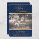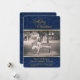 Elegante Navidades de estilo plano tarjeta de saludo hecho en azul sobre el patrón damasco azul, con gráficos de texto dorado elegante leyendo Feliz Navidad. Gráficos de tono dorado de holly, en la parte inferior de la tarjeta y un área de foto enmarcada de oro, en el medio. Personalice con su fotografía y texto, para una tarjeta de vacaciones realmente encantadora.