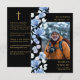 Fotos en negro y oro: tarjetas de oración conmemorativas de simpatía por el funeral con elegantes flores azules. Puedes personalizar con tu oración o poema elegido si lo prefieres. Diseñado por Thisisnotme©