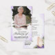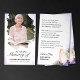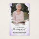 Esta hermosa y elegante tarjeta fúnebre fúnebre con flores en la que se muestra un delicado diseño de color morado con un hermoso espacio fotográfico y palabras de confort sentidas. Perfecto para recordar a un ser querido, esta tarjeta de simpatía es un conmovedor tributo a su vida y legado.