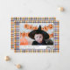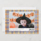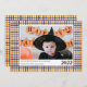 Tarjeta fotográfica Cute Purple y Naranja Gingham Plaid Halloween