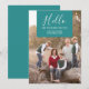 Elegance Squared New Year's Holiday Photo Card con un sencillo y moderno diseño geométrico cuadrado en verde azulado. Añadir una foto y un saludo personalizado al personalizar. Fotografía © Storytree Studios, Stanford, CA