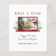 Una tarjeta de bienvenida perfecta para el año nuevo en esta época de pandemia. Saluda a tu familia y amigos un feliz año nuevo con esta moda y elegante tarjeta que incluye una pantalla de ordenador portátil con tu foto personalizada, un diseño de plantas acuáticas de moda y un guión que dice "¡Qué año!"