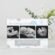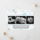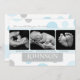 Tarjeta fotográfica de anuncio de nacimiento de papel de polka-punto azul dulce y gris grande.