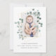 Neocolor de agua de moda eucalipto plata dólar tarjeta de invitación con forma de cuadrado de nacimiento con marco geométrico dorado.