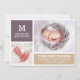 Anuncie al miembro más nuevo de su familia a sus amigos y seres queridos con esta hermosa tarjeta de foto del anuncio de nacimiento del recién nacido. El diseño le permite colocar dos fotos de su propio bebé y presenta el monograma de su familia. Un color gris morado y beige utilizado en el diseño funciona perfectamente para niñas y niños pequeños. Si quieres usar este diseño con un esquema de color diferente, por favor, no dudes en contactarme con tu solicitud. Los anuncios de nacimientos de bebés son una hermosa manera de crear una memoria duradera e introducir una nueva vida en el mundo.
