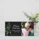 ¡Este diseño de tarjeta de fotos de Navidad es personalizable con su propio nombre familiar y foto! Hay un fondo negro, y la foto está separada del diseño por una cinta plateada y serena. Un árbol de Navidad delicado y de diseño con sofisticados adornos de copos de nieve verde brillante es el motivo de este diseño, seguido de una "Feliz Navidad" y el resto del texto es personalizable! Personalice con sus propios Navidades saludos o deseos, y sus propios nombres familiares. El texto final dice "Navidades 2010" en naranja.