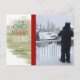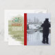 Un diseño divertido y moderno con una muestra dorada de color acentuada por una bicicleta con una corona de flores en las barras de empuje. El saludo es 'Feliz Navidad'. Añade la imagen y el personalizar que desee.