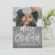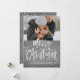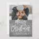 Feliz Navidad Invierno Carbón Carbón Gris Mano Leyó Script Snowflake Tarjeta fotográfica. La foto y el texto de este guión con letras a mano se pueden actualizar y personalizar con su foto y nombre. Esta tarjeta también muestra su nombre en la parte posterior de la tarjeta de Navidades.