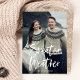 Celebra la temporada de fiestas con amigos y familia enviándoles nuestra cálida y acogedora tarjeta de fotos de las vacaciones de Sweater Weather. La tarjeta de vacaciones muestra su foto vertical favorita con "Sweater Weather" en una sobreimpresión de letras blancas y con letras a mano. Personalice la parte delantera de la tarjeta agregando un saludo personalizado y el nombre de su familia. El reverso de la tarjeta tiene un patrón de suéter de copos de nieve nórdico, beige y blanco.
