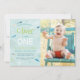 Niños de Pescado Azul Tarjeta fotográfica de Fiesta de cumpleaños Baby Boy Pish Pink First Birthday Party Card. Reemplace la foto del bebé por su propia foto. Para una mayor personalización, haga clic en el botón "Personalizar" o en el botón "Personalizar" y utilice la herramienta de diseño para modificarlo. Puede cambiar el color del texto, el estilo y los tamaños. Puedes poner la foto del bebé cambiando la imagen del borde al revés.