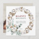 Tarjeta fotográfica de flor de algodón Wreath Happ
