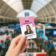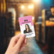 Tarjeta fotográfica de identificación rosada profe