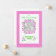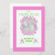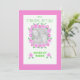 Una tarjeta de foto de personalizable de bonito para anunciar la llegada de tres Chicas de Recién nacido con flores rosas y blancas y un brillante borde rosa, de un collage de papel pintado a mano de Judy Adamson.