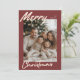 Celebre la temporada con esta elegante tarjeta de fotos de la familia Merry Christmas, con un cálido marco borgoñón y un acogedor diseño de vacaciones. El diseño resalta tu foto familiar favorita del árbol de Navidad, haciendo que sea la manera perfecta de compartir la alegría festiva con sus seres queridos. Personalice con su nombre o los detalles de su familia para un saludo de vacaciones verdaderamente único. Ideal para enviar cálidos deseos a amigos, parientes y colegas durante la época más maravillosa del año.