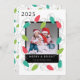 Abróchese la temporada con esta célebre tarjeta de festividad con luces de cuerda juguetonas en rojo, verde y verde azulado envuelto en la foto de su familia. Con una tipografía moderna y limpia y un saludo "Merry & Bright", esta tarjeta combina el alegre color con el estilo minimalista. Añade tu apellido y año personalizado para un Navidad alegre y contemporáneo que saluda a todos los que amarán.