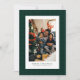 Un sutil y clásico patrón de galas enmarca una sola foto vertical en esta elegante tarjeta de vacaciones. El tipo simple permite un saludo personalizado ("Feliz Navidad" puede ser cambiado a "Felices Fiestas" o cualquier cosa que quieras), nombre familiar y año. El fondo es un tono festivo de verde esmeralda, pero se puede cambiar haciendo clic en "personalizar". La parte posterior presenta un patrón de galas esmeraldas a juego.