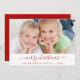 Feliz Familia navideña con niños Festividad con tarjeta de foto roja y blanca manuscrita con letras de las manos. La foto y el texto de esta escritura tipográfica escrita a mano se pueden actualizar y personalizar con tu foto y nombre de familia.