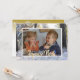 Tarjeta fotográfica de Navidad Joyeux Noël con fondo de árbol de nieve y bonito. No dude en cambiar la imagen de fondo si lo desea. También suba tu foto favorita de la familia de vacaciones. La parte trasera es dorada con copos de nieve blancos con tu propio mensaje personalizado de temporada navideña.