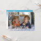 Tarjeta fotográfica de Navidad Joyeux Noël con fondo de árbol de nieve y bonito. No dude en cambiar la imagen de fondo si lo desea. También suba tu foto favorita de la familia de vacaciones. La parte trasera es azul con copos de nieve blancos con tu propio mensaje personalizado de temporada navideña.