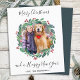 Envíe saludos de navidad esta temporada navideña con esta elegante foto de personalizado de Feliz Navidad en una carta de diseño de corona, y decoración a juego. Esta foto tarjeta de vacaciones cuenta con una corona de agua verde y roja con bayas y azulejos. Personaliza con mensaje y apellido . Esta tarjeta de navidades de plantilla de fotografía verde es perfecta para tarjetas de navidades de fotografía de familia y mascota. Visite nuestra colección para ver tarjetas de navidad, decoración y regalos a juego. DERECHOS RESERVADOS © 2020 Judy Burrows, Black Dog Art - Todos los derechos reservados. Tarjeta fotográfica de Navidad Wreath de la vegetación moderna de presupuesto