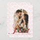 Este diseño presenta una tarjeta de foto Día de San Valentín con temática de amor con una foto en arco sobre un patrón de corazón de amor en colores rosa, blanco y rojo. Esta tarjeta se puede editar fácilmente con su foto personal y su nombre de familia.
