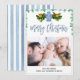 Navidades Blue White Stripe Southern Preppy Ginger Jar Family Photo Card Plantilla editable. ¡Usa esta plantilla de tarjetas de Navidades de vacaciones para las vacaciones!