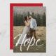Envía un mensaje de esperanza de vacaciones con esta tarjeta vertical de una foto. La tipografía de la escritura de moda da a la tarjeta un toque moderno. Las coordenadas del respaldo del motor estelar rojo, pero el color puede cambiarse haciendo clic en "personalizar". Esta tarjeta de esperanza es la manera perfecta de enviar saludos de vacaciones, especialmente cuando se anuncia algo esperanzador como un nuevo comienzo - matrimonios, bebés y más.