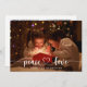 Se trata de una tarjeta de Navidades clásica y elegante, perfecta para celebrar las vacaciones. El anverso de la tarjeta tiene una foto y un guión de paz y amor con un corazón elegante en medio en lugar del signo "y". La parte posterior de la tarjeta tiene una foto adicional y su mensaje personalizado. Envíe algo de alegría a sus amigos y familiares con sus fotos y deseos personales. Si necesita algún cambio en el diseño, como color, texto o tipo de letra, póngase en contacto con nosotros en seamistmail@gmail.com. Nos encanta ser parte de tus recuerdos felices.