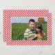 Este diseño contemporáneo de tarjetas fotográficas de vacaciones, de red_dress, presenta un sencillo marco fotográfico contra un fondo de rayas rojas de moda. En la parte superior hay un cartel marrón con las palabras "Felices fiestas". Envíe sus deseos de vacaciones con esta tarjeta fotográfica de vacaciones limpia.