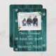 Difunde alegría de vacaciones a amigos y familia con esta célebre Verde azulada tarjeta de fotos de vacaciones rustica de madera. El diseño de la tarjeta fotográfica muestra un marco fotográfico blanco compuesto de fotografías apiladas adornadas con bayas rojas y copos de nieve que caen en blanco sobre un fondo rústico de madera. Colores adicionales disponibles con este diseño.