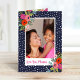 Personalizado asequible imprimió la tarjeta del Día de la Madre personalizada con su foto y texto. Este moderno y divertido diseño cuenta con un brillante borde floral y un fondo de punto abstracto. Utilice las herramientas de diseño para añadir más fotos, editar el texto con su propio mensaje especial y personalizar las fuentes y colores para crear sus propias tarjetas únicas del Día de la Madre para mamá y abuela.