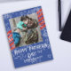 ¡Una tarjeta fotográfica roja, blanca y azul del Día del Padre acentuada con muchas estrellas!