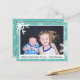Añade tu foto familiar favorita a este bonito fondo verde azulado con la tarjeta postal de Navidades con copos de nieve.