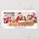 Tarjeta de fotos con guiones fletados por la mano de navidad de Feliz. La foto y el texto de este guión con letras a mano se pueden actualizar y personalizar con tres fotos y nombre de familia.