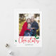 Celebra la temporada con la Minimalista tarjeta de fotos de Feliz Navidad. El saludo rojo de la Feliz Navidad y la colorida primavera de holly hacen una declaración audaz sobre un fondo blanco y fresco. La tarjeta incluye un lugar para tu foto favorita. La parte de atrás tiene mucho espacio para el personalizar con una foto o mensaje extra para sus amigos y familia.
