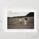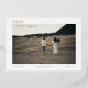 Tarjeta fotográfica moderna y mínima con "Save the Date" escrito en Relieve metalizado en la parte superior izquierda de la tarjeta superpuesta a la foto