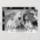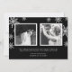 La tarjeta fotográfica de vacaciones de moda para recién casados incluye tu foto boda favorita horizontal o orientada al paisaje con "casados y brillantes" colocada en letras negras y negras. Personaliza con tus nombres y el año que viene. Las tarjetas se revierten a un fondo de copo de nieve con dos fotos cuadradas adicionales y un mensaje personalizado opcional a sus seres queridos.