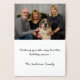 Tarjeta fotográfica navideña con copos de nieve de Relieve metalizado dorado y texto frontal. ¡El interior tiene la foto de tu familia y el mensaje personalizado!
