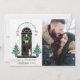 ¡Con un dulce perro del Boston Terrier llevando corbata rosada! Un clásico porche delantero decorado para las vacaciones, con árboles navideños con estrellas flanqueando la elegante puerta negra, una corona de pino con un arco de gingham rosa, y farolillos coronados con rosas y flor. Al estilo de Magnolia | granja moderna | clásico y elegante. 3 COLORES DE REPRODUCCIÓN PARA LA PARTE ATRÁS ESTÁN EN EL DISEÑO (rosa como se muestra, negro u verde oscuro - basta con editar y ocultar las imágenes en relieve que no desee). ¡Añade tu propio retrato familiar para un saludo personal de vacaciones!