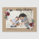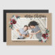 Tarjetas de foto personalizado magnéticas de vacaciones asequibles con plantillas sencillas para la personalización. Este diseño festivo presenta un elegante borde floral acuático de colores rojo, verde y burdeos sobre un falso fondo de papel kraft. El texto dice "Feliz Navidad" en un moderno tipo de letra de escritura caligráfica. Personalízalo con tus fotos, nombre, año u otro texto personalizado. Utilice las herramientas de diseño para editar el texto, añadir más fotos y crear uno único de los amables imanes de tarjetas de fotos de vacaciones.