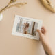 Esta simple y limpia tarjeta navideña dice "Feliz Navidad" en una mezcla de crujientes bordes de colores neutros y fuentes tradicionales, incluyendo su foto familiar favorita. La parte posterior de la tarjeta es un lienzo abierto limpio listo para el texto personalizado.
