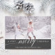 Elegante y simple "Una Navidad muy Feliz" Guión sobre el fondo de la impresión de papel gris oscuro y patrón de bifurcación de árboles de navidad en la parte posterior. Envíe vítores de vacaciones a su familia y amigos. Para una personalización más avanzada de este diseño, pulse el botón "Personalizar".